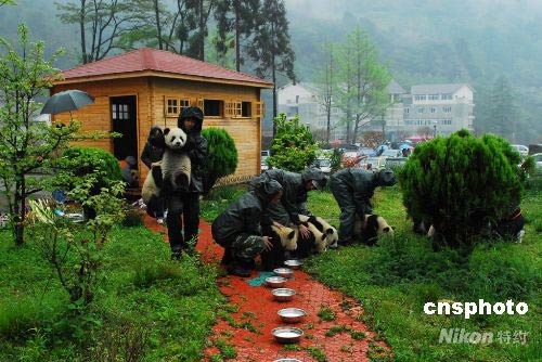 四川發(fā)生大地震后,臥龍保護區(qū)管理局的職工于第一時間將大熊貓轉(zhuǎn)移到安全地帶。在此次地震中,臥龍保護區(qū)管理局的房舍嚴(yán)重受損,其中32套大熊貓圈舍中有14套全部損毀,其余嚴(yán)重受損。據(jù)悉,工作人員目前正在尋找二到三只下落不明的大熊貓,其余所有熊貓被集中飼養(yǎng)在簡單修復(fù)的圈舍中,但圈舍比較擁擠。國家林業(yè)局和四川省林業(yè)廳已緊急調(diào)撥熊貓食品、藥品,以及保護區(qū)內(nèi)職工急需的帳篷等救援物資,現(xiàn)已繞道送至臥龍自然保護區(qū)。中新社發(fā) 臥龍 攝