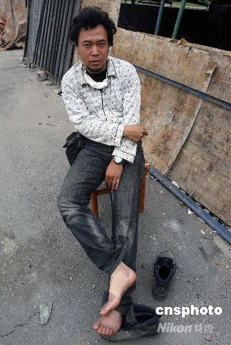 四川汶川大地震發(fā)生時在映秀鎮(zhèn)遭遇山體坍方而受重傷的《北京晚報》攝影記者甘南,堅持在當(dāng)?shù)夭稍L到5月18日才在同事的陪伴下撤離。中新社發(fā) 任晨鳴 攝