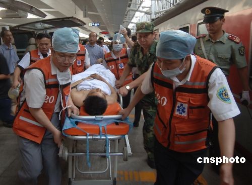 組圖:地震災(zāi)區(qū)首趟運(yùn)送傷員專列順利抵達(dá)重慶(5)