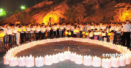 5月20日,全國(guó)哀悼日第二天,河南省洛陽市龍門石窟職工以及學(xué)生志愿者到盧舍那大佛前的伊河上放800余盞河燈,他們通過傳統(tǒng)的放河燈形式對(duì)四川地震遇難者寄予哀思。