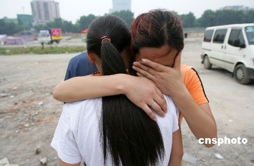 5月20日,北川中學(xué)學(xué)生臨時(shí)安置點(diǎn),在尋找了六天之后,李春榕找到了外甥女楊曉丹,在得知父母已不在人世時(shí),楊曉丹與小姨相擁而泣。劉震 攝