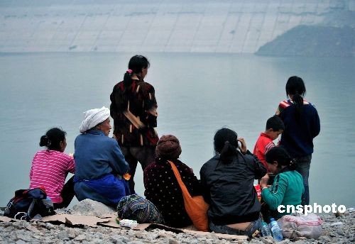5月16日傍晚,四川都江堰紫坪鋪水庫臨時(shí)碼頭邊,已經(jīng)被解放軍和武警官兵解救的村民,在江邊遙望著遠(yuǎn)方,企盼著他們尚在災(zāi)區(qū)的親人。 吳蘇琳 攝