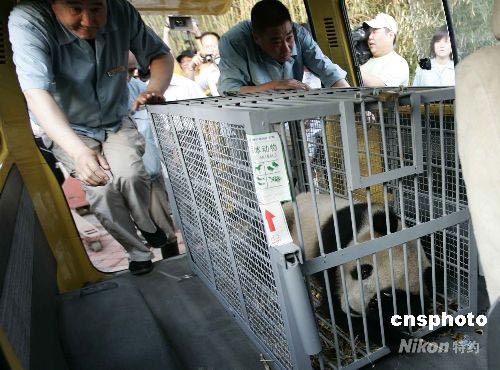 5月24日下午,八只來自四川臥龍的奧運大熊貓平安抵達北京動物園。中新社發(fā) 杜洋 攝