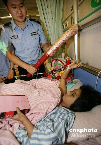圖:奧運(yùn)火炬來到災(zāi)區(qū)孩子身邊(2)