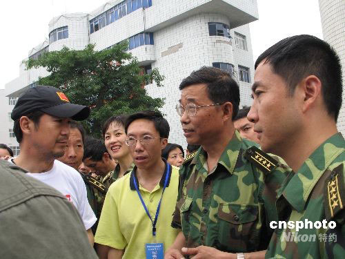 成都軍區(qū)總醫(yī)院院長(zhǎng)曹勇、政委馬榮恩代表全院官兵歡迎“明星慰問(wèn)團(tuán)”的到來(lái)。中新社發(fā) 朱琥姚遠(yuǎn) 攝