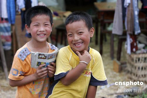 組圖:地震災區(qū)孩子漸露童真笑臉(4)