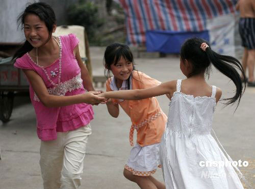 組圖:地震災(zāi)區(qū)孩子漸露童真笑臉(8)