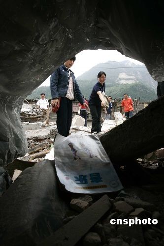 家長(zhǎng)在學(xué)校廢墟中尋找遇難孩子的遺物
