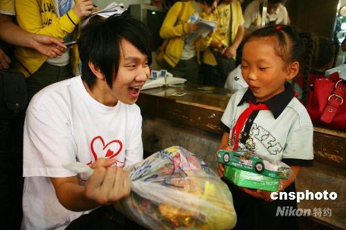 組圖:香港藝人林俊杰看望災(zāi)區(qū)孩子(2)