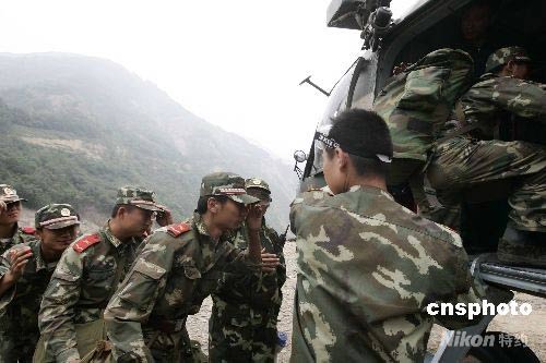 唐家山堰塞湖施工部隊(duì)乘直升機(jī)陸續(xù)撤退