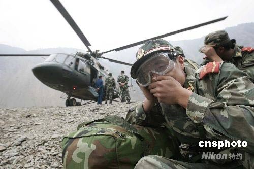 唐家山堰塞湖施工部隊(duì)乘直升機(jī)陸續(xù)撤退(2)
