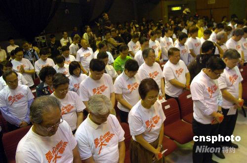 出席義工招募計(jì)劃的人士在會前向四川地震的遇難者默哀。