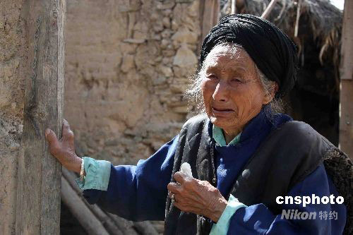 圖:為倒塌房屋傷心的羌族老人