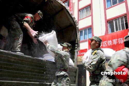 鐵軍救災(zāi)物資運(yùn)輸隊(duì)的車隊(duì)向理縣藏、羌族居住的高原山寨運(yùn)送救災(zāi)物資。中新社發(fā) 曾憲平 攝