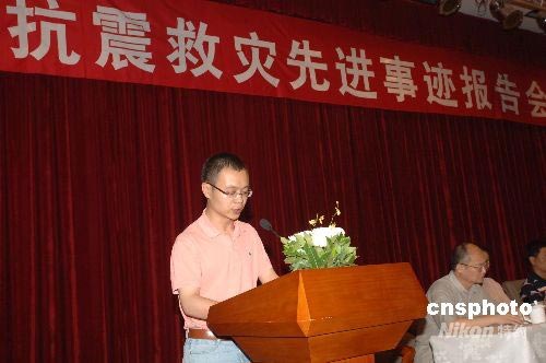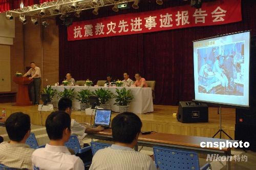 圖為僑辦系統(tǒng)抗震救災(zāi)先進(jìn)事跡報告會的現(xiàn)場。中新社發(fā) 鄒憲 攝
