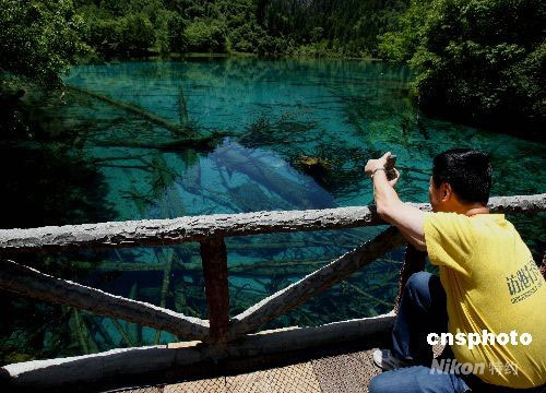 6月18日,一位香港心理教育志愿者完成災(zāi)區(qū)服務(wù)任務(wù)后,路過(guò)震后九寨溝,拍攝分外寧?kù)o的美景。四川汶川大地震絲毫未損四百公里外的九寨溝,風(fēng)景區(qū)旅游設(shè)施完善如初,六月底前將部分恢復(fù)旅行社組團(tuán)旅游,游客主要通過(guò)航空和甘肅省以及四川省的繞行公路進(jìn)出。地震以來(lái),這里每天都接待一些散客。中新社發(fā) 賈國(guó)榮 攝