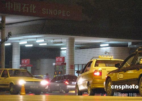 國家發(fā)展改革委決定自2008年6月20日起將汽油、柴油價(jià)格每噸提高1000元,航空煤油價(jià)格每噸提高1500元。圖為6月19日深夜,北京部分司機(jī)獲悉成品油調(diào)價(jià)消息后,趕在20日凌晨零點(diǎn)前在加油站排起長龍加油。 中新社發(fā) 余瑞冬 攝