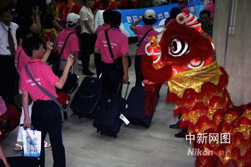 舞獅迎接大陸游客(中新社記者 徐長安/攝)