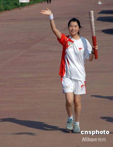 圖:香港城市大學(xué)學(xué)生詹寶傳遞奧運火炬