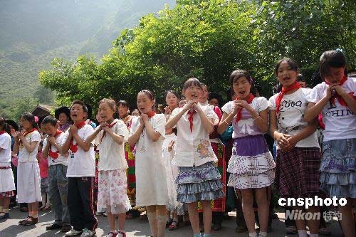 圖:災區(qū)孩子高唱感恩的心