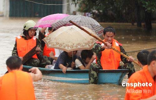7月22日,湖北襄樊市遭遇1959年以來的最大暴雨。截至22日15時止,市區(qū)降雨量已達254毫米。襄樊氣象臺數(shù)據(jù)顯示,從22日凌晨2時開始,整個襄樊地區(qū)普降暴雨,強降雨中心位于襄樊市城區(qū)。至下午15時止,襄樊城區(qū)降雨量已達254毫米,整個襄樊地區(qū)的降雨量亦普遍在80毫米以上。當(dāng)日,城區(qū)多處低洼地段出現(xiàn)內(nèi)澇,一些群眾被洪水圍困。當(dāng)?shù)匚渚、公安、消防部門迅速出動,把被洪水圍困的群眾轉(zhuǎn)移到安全地帶。目前,受災(zāi)情況市政府已開始統(tǒng)計。中新社發(fā) 文銘 攝