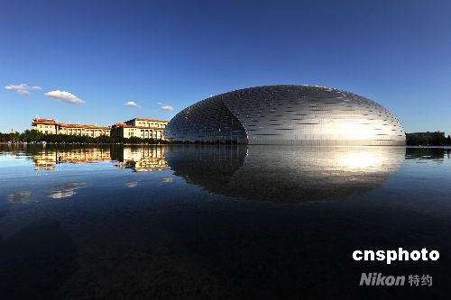圖:藍(lán)天白云下的國家大劇院