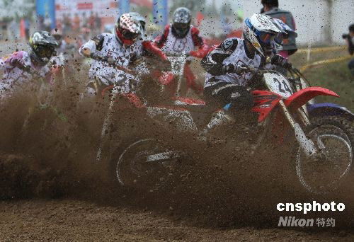 9月20日,2008年“洋河藍色經(jīng)典杯”全國摩托車越野錦標賽(泗陽站)暨國際越野摩托車邀請賽在江蘇泗陽舉行,來自法國、比利時、澳大利亞、新西蘭、日本、蒙古、中國和中國香港等8個國家和地區(qū)的賽車好手參賽。中新社發(fā) 趙振清 攝