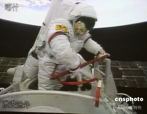 圖:翟志剛完成太空行走返回軌道艙(2)
