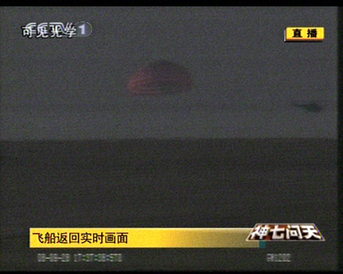 圖為飛船著陸的瞬間(攝于北京航天飛控中心大屏幕)。中新社記者 齊彬 攝