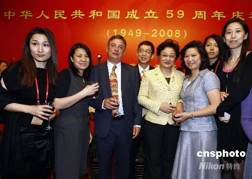 9月29日,國務院僑辦和中國海外交流協(xié)會舉行招待午宴,歡迎來京參加國慶59周年活動的華人華僑代表,國務院僑辦主任李海峰致祝酒辭。中新社發(fā) 杜洋 攝
