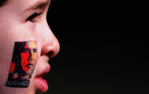 一個(gè)孩子臉上畫(huà)著奧巴馬的頭像