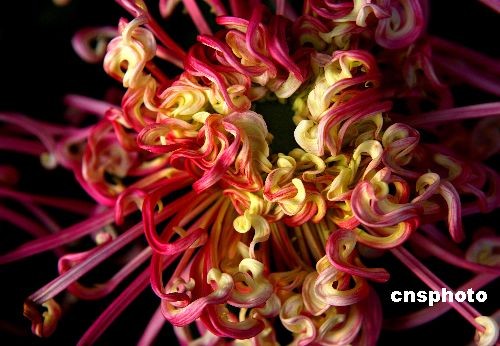 在11月上旬的河南省開(kāi)封市第二十六屆菊花節(jié)上,盆盆競(jìng)相怒放,朵朵爭(zhēng)奇斗艷。 菊花花會(huì)是開(kāi)封市政府主辦的融觀花賞菊和展示宋都民俗文化為一體的盛大旅游文化活動(dòng),每到金秋時(shí)節(jié),古城公園景點(diǎn)、大街小巷到處都是菊的世界,花的海洋。期間,龍亭、鐵塔、大相國(guó)寺、包公祠、禹王臺(tái)五大展區(qū)展花40余萬(wàn)盆,200多個(gè)品種,菊花造型千姿百態(tài),令人目不暇接。中新社發(fā) 宋吉河 攝