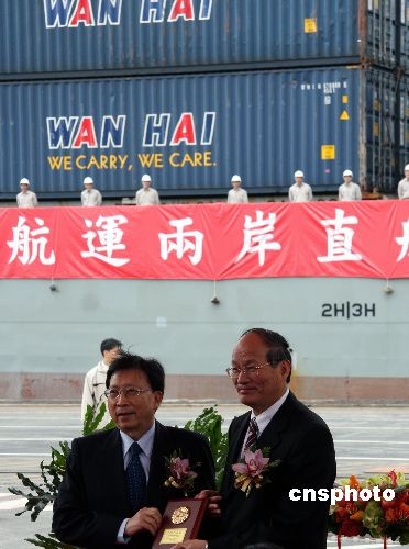 12月15日上午,臺灣行政當局負責人劉兆玄率同“陸委會主委”賴幸媛、;鶗倍麻L高孔廉、“交通部次長”游芳來與臺灣知名航商負責人共同出席“兩岸海運直航基隆港首航儀式”。
