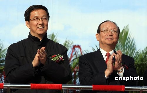 12月15日,上海市市長(zhǎng)韓正(左)與國(guó)民黨副主席蔣孝嚴(yán)(右)在洋山港出席兩岸海上直接通航首航儀式。當(dāng)日,海峽兩岸海上、空中直航及直接通郵在兩岸同步啟動(dòng)。
