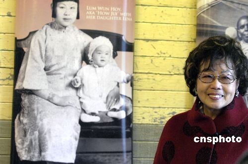 華裔移民方趙玉蓮捐出母親當(dāng)年被羈留時所用的衣物以及自己和母親的照片,盼后代不忘華人移民之艱辛。中新社發(fā) 陳鋼 攝