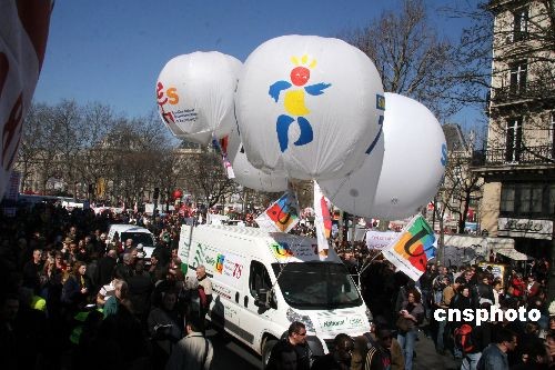 圖為巴黎的示威游行隊(duì)伍在共和國(guó)廣場(chǎng)集結(jié)。中新社發(fā) 吳衛(wèi)中 攝