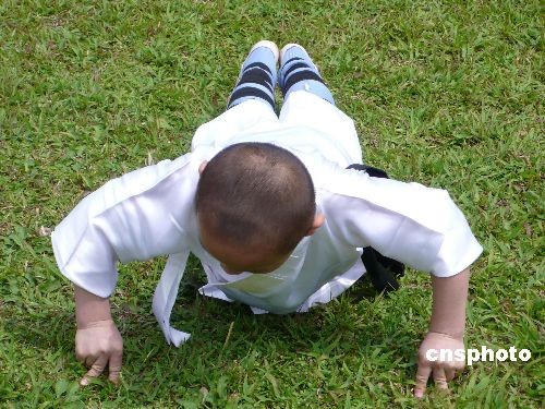 圖:大陸"大力神童"臺(tái)北表演一指禪俯臥撐(2)