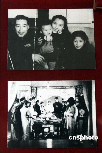 4月2日,上海福壽園“祭先烈、敬先賢、憶先人”清明月紀(jì)念展開幕,百余位建國(guó)英雄、名人精英、藝術(shù)大師的生平資料和實(shí)物史料亮相。圖為上世紀(jì)三十年代“電影皇帝”金焰與著名電影藝術(shù)家秦怡的結(jié)婚場(chǎng)景照(下圖)以及他們夫婦與孩子的合影(上圖)首次公開展覽。金焰,1910年出生于韓國(guó)漢城,代表作品《風(fēng)流劍客》、《野草閑花》、《一剪梅》等。1948年金焰與秦怡結(jié)婚。1983年金焰離開人世。 中新社發(fā) 潘索菲 攝