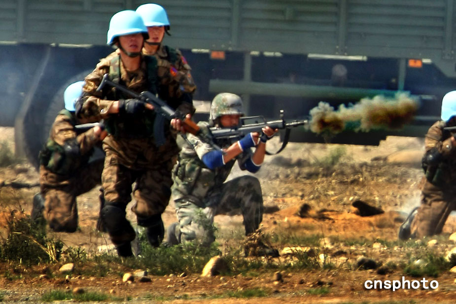 7月3日,中國和蒙古首次舉行維和聯(lián)合軍事訓(xùn)練,以執(zhí)行聯(lián)合國框架下維和任務(wù)為背景,在北京地區(qū)某訓(xùn)練場開展多種綜合演練。中新社發(fā) 宋吉河 攝