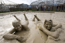 狂熱音樂(lè)迷盡享泥漿浴