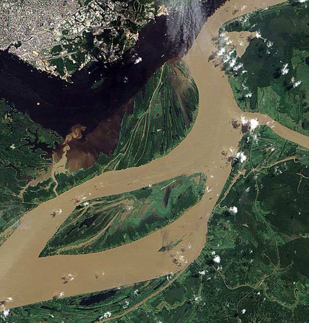 英國媒體近日公布了一組衛(wèi)星上拍攝到的地球自然景觀的照片,領(lǐng)觀者頗感震撼。圖為從衛(wèi)星上拍到的洪水。
