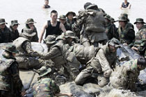 當?shù)貢r間7月30日,在首爾的美軍基地參加軍訓夏令營的韓國數(shù)百名學生來到金浦進行了泥地訓練,場面十分激烈甚至殘酷。