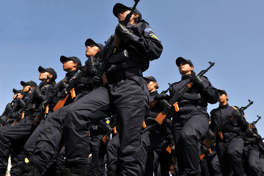 圖為女警察學(xué)員在畢業(yè)典禮上列隊行進。