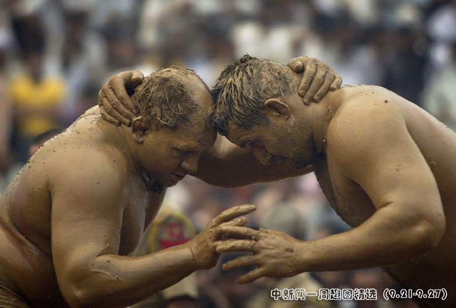 9月22日,印度格德拉,第5屆印度-巴基斯坦摔跤友誼賽在當(dāng)?shù)嘏e行。圖片來(lái)源:中國(guó)新聞網(wǎng)