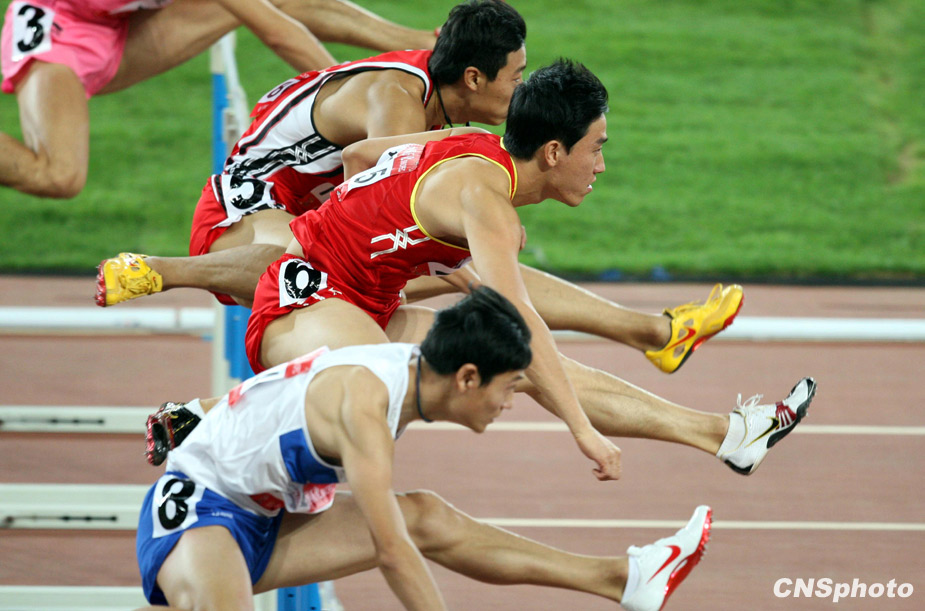 10月24日晚,全運(yùn)會110米欄預(yù)賽在濟(jì)南奧體中心舉行,“飛人”劉翔以13秒75成績輕松晉級決賽。來源:中國新聞網(wǎng)