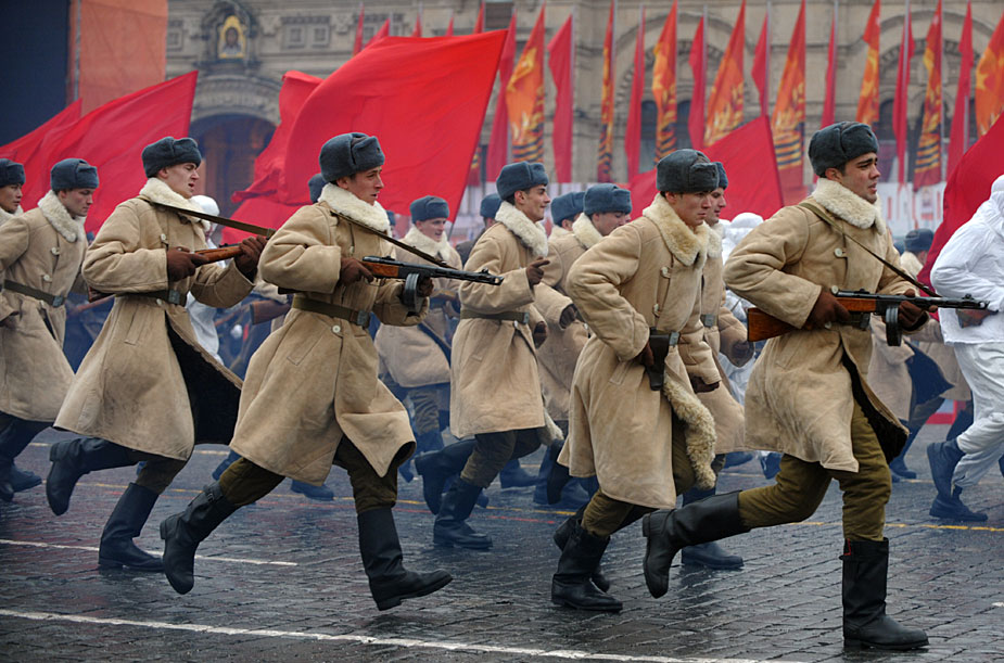 11月7日,俄羅斯士兵身穿二戰(zhàn)時(shí)期的軍服在莫斯科紅場(chǎng)舉行閱兵閱兵式紀(jì)念1941年紅場(chǎng)閱兵。圖片來源:中國(guó)新聞網(wǎng)