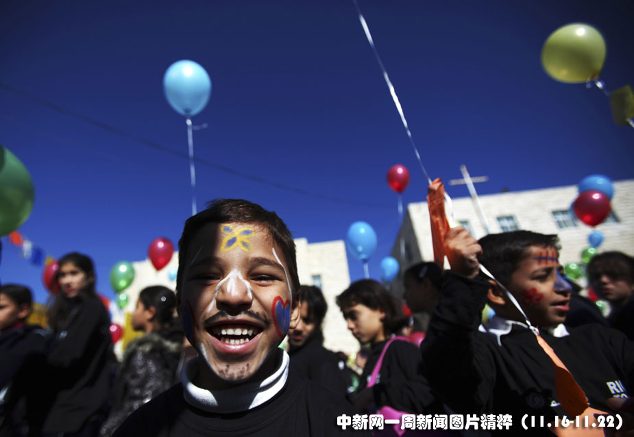 2009年11月20日,巴勒斯坦兒童慶祝國際兒童日。圖片來源:中國新聞網(wǎng)
