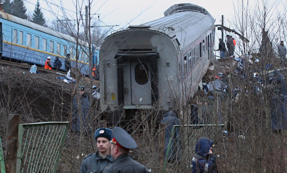 莫斯科時間27日21點(diǎn)34分,由莫斯科開往圣彼得堡的166次“涅瓦特快號”客運(yùn)列車的幾節(jié)車廂發(fā)生脫軌事故。圖片來源:中國新聞網(wǎng)