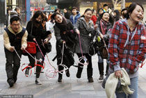 北京青年遛"隱形狗"