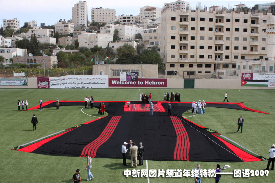 世界最大的球衣:10月25日,巴勒斯坦人利用傳統(tǒng)刺繡工藝制作了世界上最大的球衣,并獲得了吉尼斯紀錄的認可。圖片來源:中國新聞網(wǎng)